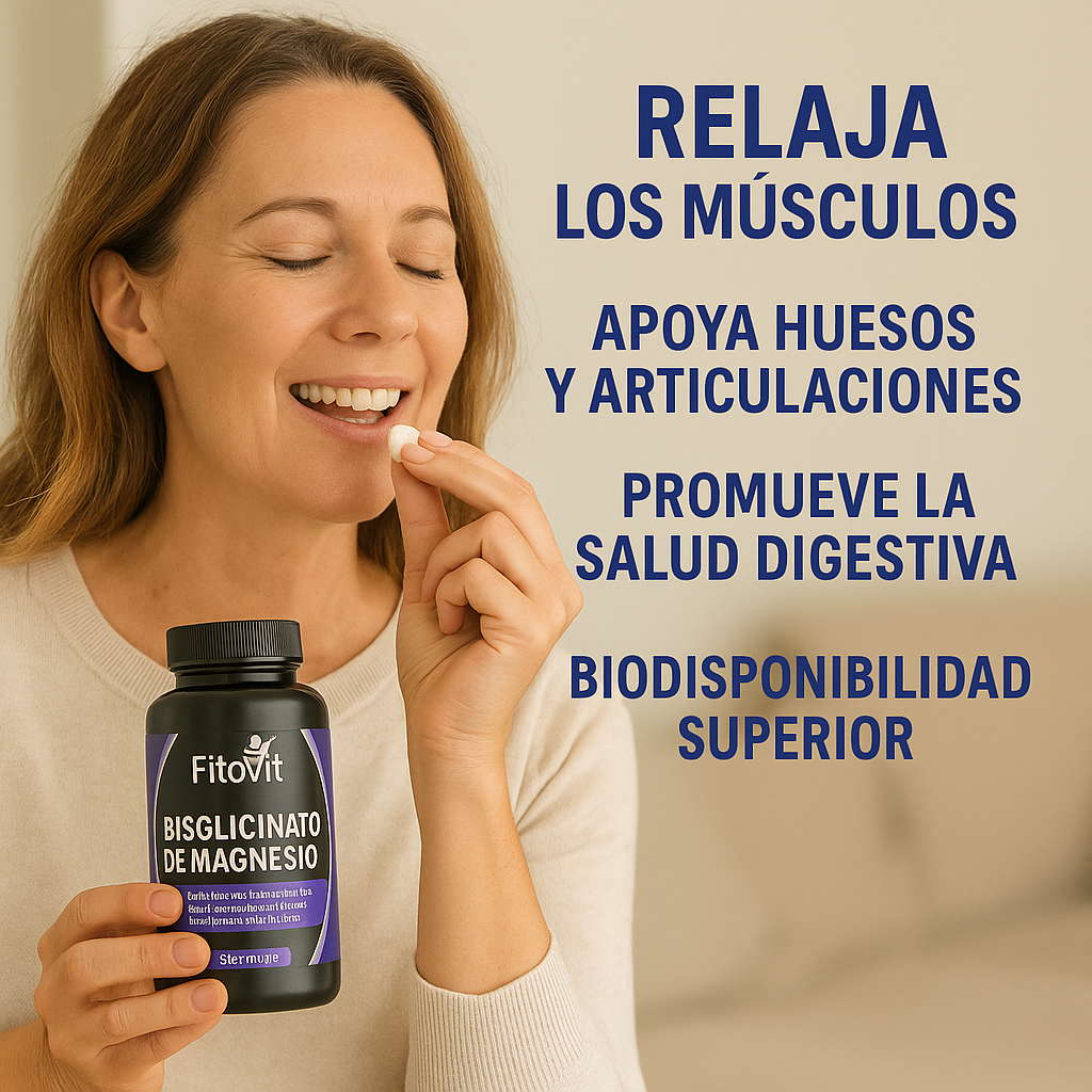 Es una forma altamente absorbible de magnesio unida a glicina, ideal para mejorar el sueño, reducir el estrés, y fortalecer músculos, huesos y sistema nervioso.