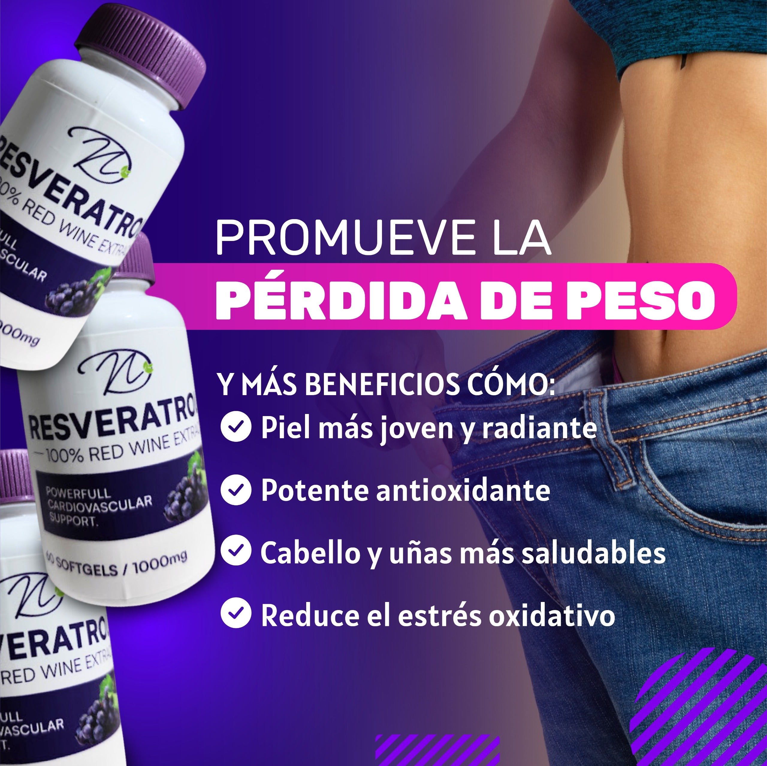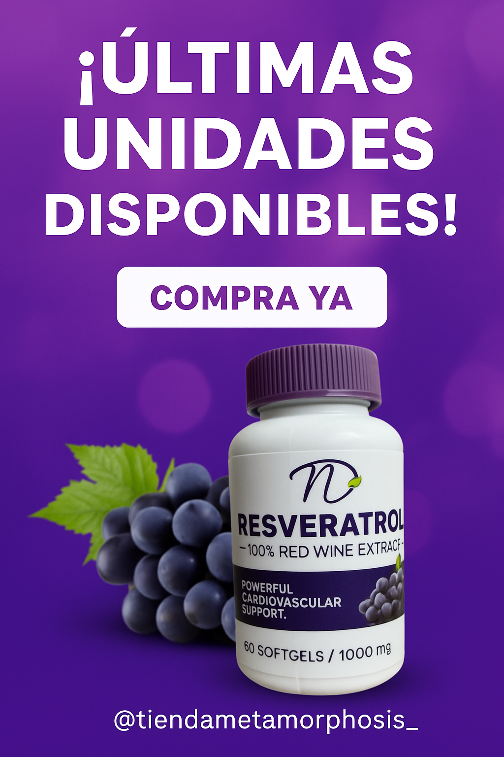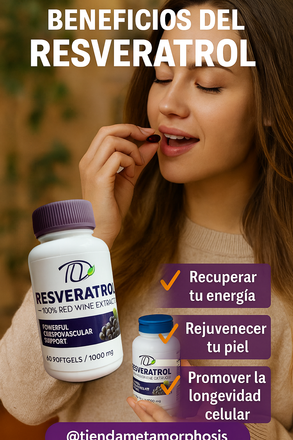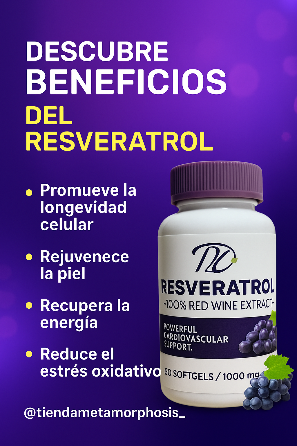 Es un suplemento antioxidante natural elaborado con resveratrol, extracto de açaí y vino tinto. Ayuda a prevenir el envejecimiento celular y mejorar la salud general.